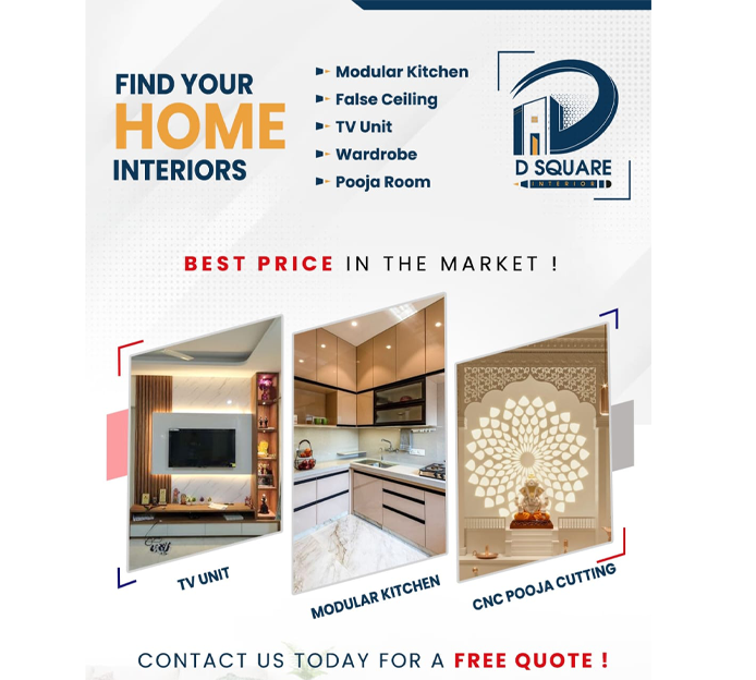 At D Square Interior, we view Interior Designing as the fine art of transforming your space into something truly appealing and awesome. We assist you with every aspect, including home space planning, designing your modular kitchen, wardrobes, and furniture, selecting wall and floor colours, and choosing materials that align with your budget.
