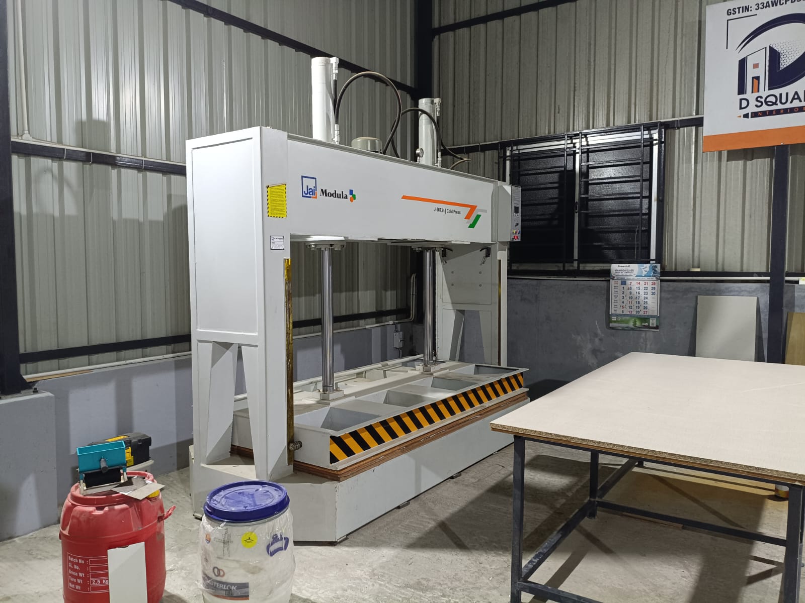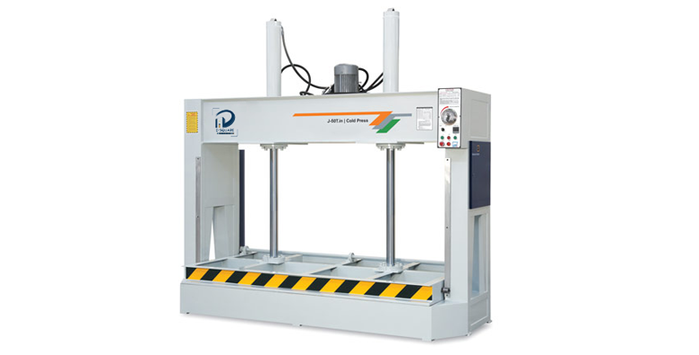 The press applies uniform, high pressure across the panels and the bonding sheets, ensuring the glue fully cures and the layers are firmly attached to one another. Since it is a 'Cold Press,' the bonding process occurs at room temperature without the application of heat.